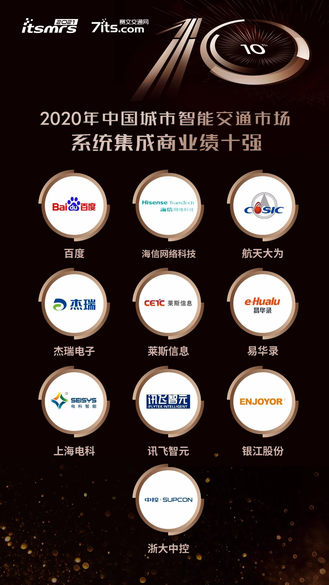 “2020年中國城市智能交通市場係統集成商業績十強”名單如下: