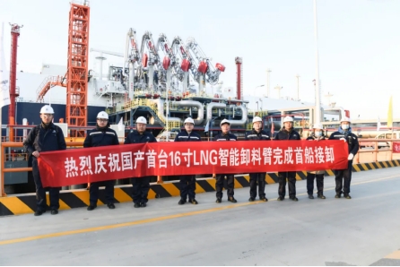Ø 國產卸料臂經受住了近24小時零下163°C極寒考驗,安全高效完成了首次實船接卸工作,示範應用取得全麵成功!