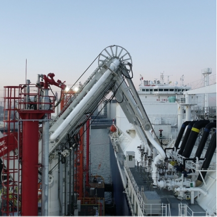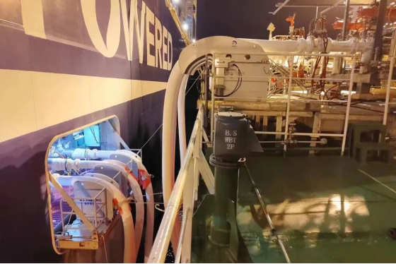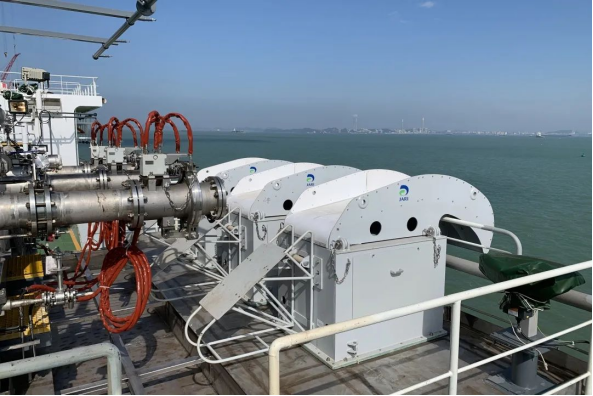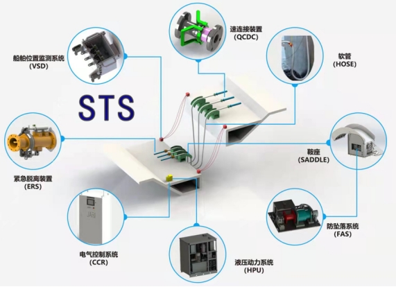 船用轉運裝備與係統是海上LNG產業鏈的關鍵核心係統之一,是用於實現LNG加注終端與LNG受注終端之間LNG貨物輸送的過駁裝置,廣泛應用於FSRU、LNG運輸船間船船LNG輸送,LNG運輸船/FSRU與岸站間船岸LNG輸送,LNG加注船/LNG動力船/岸站間船船、船岸LNG輸送以及卸料臂終端備用船岸LNG輸送等領域,實現LNG海上安全快速輸送。係統主要包括:軟管、船船快速連接/分離裝置、主動緊急脫離裝置、軟管鞍座、防墜落係統、軟管鞍座、液壓動力單元、電氣控製係統。