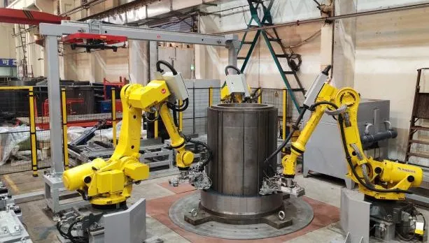 近(jin)日(ri),中(zhong)國(guo)海(hai)防(fang)子(zi)公(gong)司(si)傑(jie)瑞(rui)自(zi)動(dong)化(hua)承(cheng)研(yan)的(de)某(mou)電(dian)機(ji)公(gong)司(si)定(ding)子(zi)鐵(tie)芯(xin)疊(die)裝(zhuang)機(ji)器(qi)人(ren)工(gong)作(zuo)站(zhan)項(xiang)目(mu)在(zai)客(ke)戶(hu)現(xian)場(chang)順(shun)利(li)通(tong)過(guo)驗(yan)收(shou)並(bing)投(tou)入(ru)使(shi)用(yong),實(shi)現(xian)了(le)大(da)型(xing)高(gao)壓(ya)異(yi)步(bu)電(dian)機(ji)定(ding)子(zi)鐵(tie)芯(xin)的(de)自(zi)動(dong)化(hua)生(sheng)產(chan)。