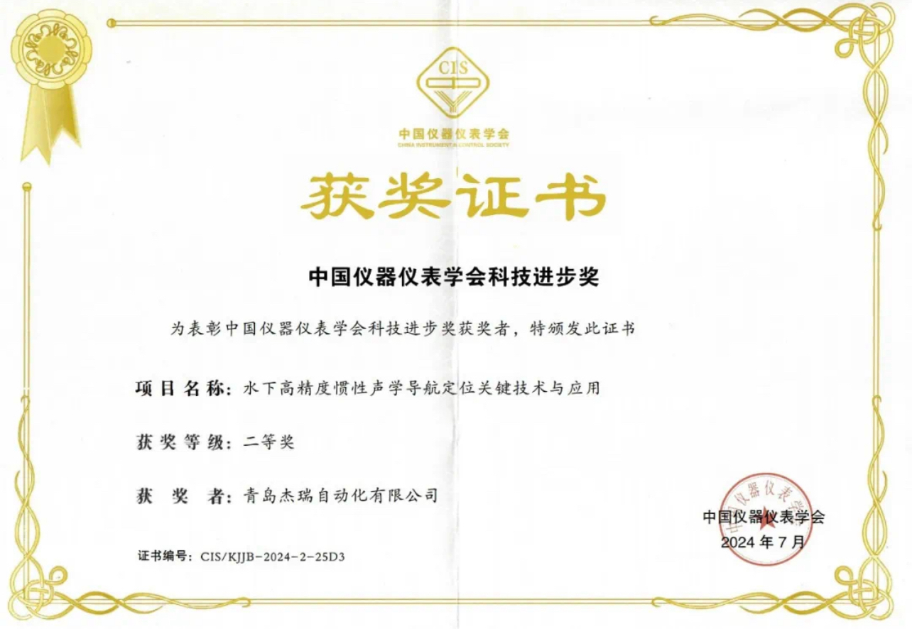 此ci次ci榮rong獲huo中zhong國guo儀yi器qi儀yi表biao學xue會hui科ke學xue技ji術shu獎jiang,是shi對dui青qing島dao傑jie瑞rui科ke研yan實shi力li的de肯ken定ding。青qing島dao傑jie瑞rui將jiang繼ji續xu堅jian持chi創chuang新xin驅qu動dong發fa展zhan戰zhan略lve,不bu斷duan探tan索suo水shui下xia高gao精jing度du導dao航hang定ding位wei技ji術shu前qian沿yan領ling域yu,在zai科ke技ji創chuang新xin的de道dao路lu上shang,繼ji續xu書shu寫xie新xin的de輝hui煌huang篇pian章zhang。