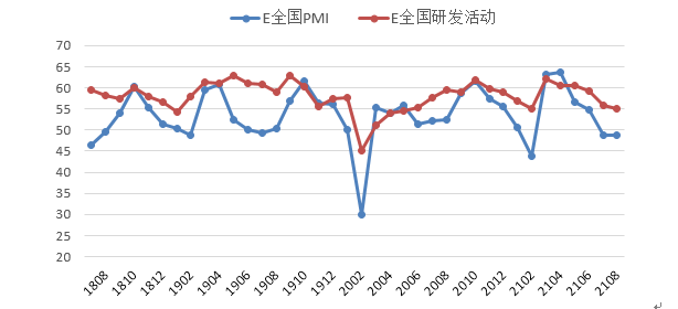 中采谘詢於穎認為:“8月新興產業EPMI小幅回落0.1個百分點至48.8,低於近年均值1.7個百分點。EPMI於8月旺季初期回落為4年來首次,回落主要受水災和疫情管控影響,所有指標都體現了供應鏈部分中斷狀態。配送指標47,是除了去年疫情期間以外的四年次低值,與生產倒掛類似長假月份;綜合指標回落幅度較小,配送的反向拉升就有貢獻。分項指標中,生產量本月回落1.7個百分點成為PMI回落主因,是供應中斷受製最大的指標;訂單回升0.3個百分點,低於2018—2019年均值近3個百分點,回升受限,但大部分地區生產秩序平穩,需求仍在。采購量、自有庫存雙雙回升,但也遠低於往年均值,企業雖為秋周期做準備,但備貨行為受阻反彈較弱。用戶庫存繼續回落至44.5中低位,為後期旺季帶來相對充足空間。出口指數受製於物流環比僅小幅回升0.1,采購季進口指數環比回升1.8,鑒於國內外疫情的控製存在不確定性,未來進出口的走勢仍有待觀察。就業指數環比回落0.3,為2103以來新低。購進價格經過上月短暫回落後回升6個百分點至68.8,qiyechengbenjixuchengya。yanfahuodonghexinpintouyansuijunxiaofuhuisheng,danruoyujinnianjunzhi,qiyelirunbeijiya,zhichuxiangduigengweijinshen。suizhewangjijijianglailin,daikuannanduzhishuhuanbihuishengdao54.8,企業經營預期57.5的位置,都回到四年數據中樞位置,企業正在經曆淡季後再遇疫情的磨礪非常期,預計管控放鬆後,產需將報複性反彈。”