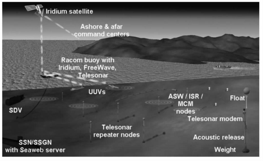 海灣戰爭以來,在“由海向陸”和“21世紀海上力量”等美國國防部頂層規劃的指引下,美海軍的戰略重點逐漸由深海向淺海轉移。在美軍“網絡中心戰”概念的影響下,美海軍提出了“水下信息網絡中心戰”的概念,特別重視淺海地區水下監視係統和水下信息網的發展,以此增加水下探測距離和分辨率、提ti高gao水shui下xia戰zhan場chang信xin息xi控kong製zhi能neng力li,擴kuo大da水shui聲sheng預yu警jing探tan測ce範fan圍wei。從cong技ji術shu上shang講jiang,淺qian海hai環huan境jing比bi較jiao複fu雜za,環huan境jing噪zao聲sheng使shi信xin噪zao比bi很hen低di,對dui水shui下xia通tong信xin技ji術shu的de挑tiao戰zhan更geng高gao,而er發fa展zhan淺qian海hai水shui下xia信xin息xi網wang絡luo的de關guan鍵jian在zai於yu通tong信xin,美mei海hai軍jun非fei常chang重zhong視shi淺qian海hai水shui下xia信xin息xi網wang絡luo建jian設she。為wei了le更geng好hao地di實shi施shi淺qian海hai作zuo戰zhan,有you效xiao應ying對dui安an靜jing型xing潛qian艇ting,美mei國guo先xian後hou研yan發fa了le先xian進jin可ke部bu署shu係xi統tong、近海水下持續監視網絡等一係列專門針對淺海的水下信息網絡。先進可部署係統研製的主要目的是探測、定位在淺水近岸環境中的安靜型潛艇。