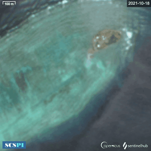 10月18日-11月22日,越占畢生礁施工進展迅猛。圖:歐空局“哨兵”衛星