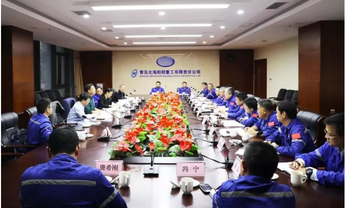 調研期間,楊磊實地考察了北船重工青島武船、造船碼頭、聯合廠房、修船分廠、造船大塢,了解了北船重工發展曆程、生產經營情況、黨建工作情況以及主題教育開展情況,並參加了北船重工領導班子主題教育調研成果交流會。