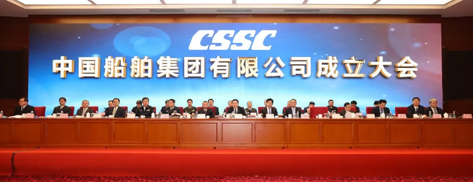 11月26日,中國船舶集團有限公司成立大會在京隆重舉行。國務院國資委黨委書記、主任郝鵬,中央組織部副部長張建春,工信部黨組成員、副部長,國家國防科工局黨組書記、局長張克儉,工信部黨組成員、副部長辛國斌,軍方有關領導人員,中央紀委國家監委駐國資委紀檢監察組組長、國務院國資委黨委委員陳超英,國務院國資委黨委委員、副主任翁傑明,上海市委常委、副市長吳清,國務院國資委黨委委員、秘書長彭華崗,交通運輸部總工程師薑明寶,應急管理部總工程師吳鑫,中國船舶集團黨組書記、董事長雷凡培等領導出席成立大會。中國船舶集團黨組副書記、總經理楊金成主持會議。