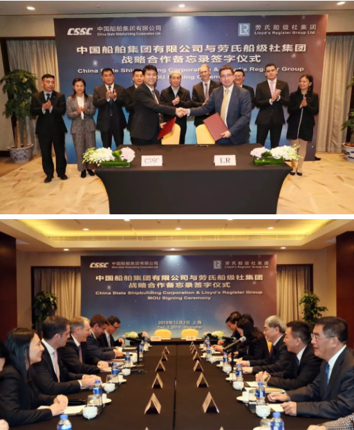 12月2日ri,中zhong國guo船chuan舶bo集ji團tuan有you限xian公gong司si與yu勞lao氏shi船chuan級ji社she集ji團tuan在zai上shang海hai簽qian訂ding戰zhan略lve合he作zuo備bei忘wang錄lu,標biao誌zhi著zhe雙shuang方fang的de合he作zuo開kai啟qi了le新xin的de曆li史shi篇pian章zhang。中zhong國guo船chuan舶bo集ji團tuan董dong事shi長chang雷lei凡fan培pei,副fu總zong經jing理li孫sun偉wei、薑仁鋒,勞氏船級社集團首席執行官Alastair Marsh共同見證雙方簽約。中國船舶集團副總經理杜剛、勞氏船級社集團船舶與海工總裁Nick Brown分別代表雙方在備忘錄上簽字。簽約前,雙方圍繞全球船舶海工市場及技術發展趨勢作了交流,就進一步加強交流溝通、深化戰略合作進行了深入探討並達成廣泛共識。