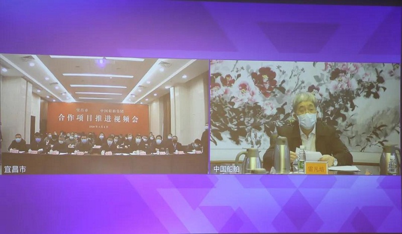 4月2日,中國船舶集團與宜昌市委市政府舉行合作項目推進視頻會。中國船舶集團黨組書記、董事長雷凡培與湖北省委常委、宜昌市委書記周霽,宜昌市委副書記、市長張家勝通過視頻進行會談,雙方就平穩有序複工複產、推進相關項目建設等進行了交流並達成廣泛共識。中國船舶集團黨組成員、副總經理錢建平,宜昌市委常委、市委組織部部長汪偉,宜昌市副市長王應華參加會談。