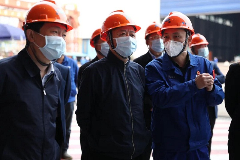 王江平一行深入車間實地考察了重點在製產品生產情況,認真聽取了武船集團積極參與疫情防控、有序推進複工複產和疫情影響等方麵的情況彙報。