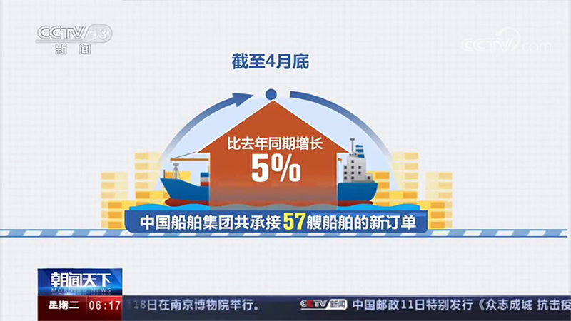 截至4月底,中國船舶集團共承接57艘船舶的新訂單,比去年同期增長5%。