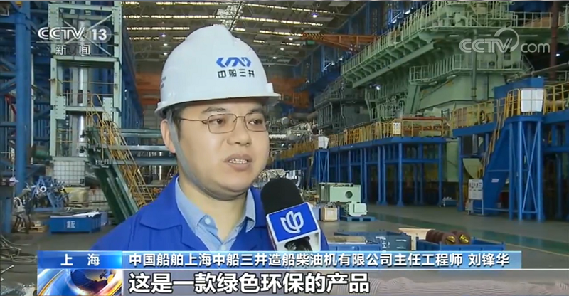 中國船舶上海中船三井造船柴油機有限公司主任工程師 劉鋒華:尺寸最大,達到了5層樓那麼高,功率達到了63800duoqianwa,gonglvyeshizuidade。zheshiyikuanlvsehuanbaodechanpin,shiyongranqiyunxingshidanyanghuawudepaifangbudaochangguifadongjideshifenzhiyi,liuyanghuawuhekeliwudepaifangyeshifeichanghaode,buyongzhuangrenhehouchulishebei,doukeyimanzuIMO(國際海事組織)最新的排放法規要求。