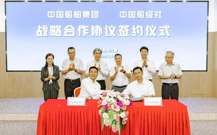 7月10日,中國船舶集團有限公司與中國船級社在京簽訂戰略合作協議。中國船舶集團黨組書記、董事長雷凡培,黨組成員、副總經理杜剛,中國船級社總裁莫鑒輝,副總裁朱愷、範強出席簽約儀式。中國船舶集團黨組成員、副總經理孫偉,中國船級社副總裁孫峰分別代表雙方在協議上簽字。簽約後,雙方圍繞共同服務國家戰略,就進一步加強交流合作、促進優勢互補、實現共贏發展進行了深入交流。