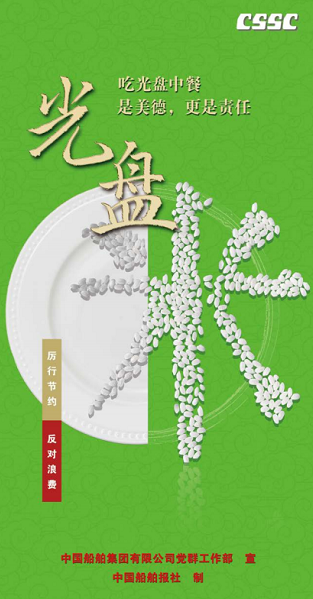 勤(qin)儉(jian)節(jie)約(yue)是(shi)中(zhong)華(hua)民(min)族(zu)的(de)傳(chuan)統(tong)美(mei)德(de),也(ye)是(shi)中(zhong)國(guo)共(gong)產(chan)黨(dang)的(de)優(you)良(liang)作(zuo)風(feng)。為(wei)深(shen)入(ru)貫(guan)徹(che)落(luo)實(shi)習(xi)近(jin)平(ping)總(zong)書(shu)記(ji)重(zhong)要(yao)指(zhi)示(shi)精(jing)神(shen),中(zhong)國(guo)船(chuan)舶(bo)集(ji)團(tuan)黨(dang)組(zu)對(dui)製(zhi)止(zhi)餐(can)飲(yin)浪(lang)費(fei)作(zuo)出(chu)全(quan)麵(mian)部(bu)署(shu),要(yao)求(qiu)集(ji)團(tuan)公(gong)司(si)廣(guang)大(da)黨(dang)員(yuan)幹(gan)部(bu)在(zai)厲(li)行(xing)節(jie)約(yue)、反對浪費方麵走在前列、作出表率,大力弘揚勤儉節約的光榮傳統。