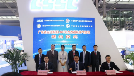 2020年5月,中國船舶集團聯合中國海洋石油集團有限公司與廣東省人民政府簽署了《廣東省內河船舶LNG動力改造項目合作框架協議》。本次海博會上,中國船舶集團旗下廣州船院與合作夥伴隆重舉行“廣東省內河船舶LNG動力改造及供氣協議”簽約儀式。該項目的簽約是推動廣東省內河航運綠色發展的重要開端,是優化水運行業用能結構,實現轉型升級的重要舉措。