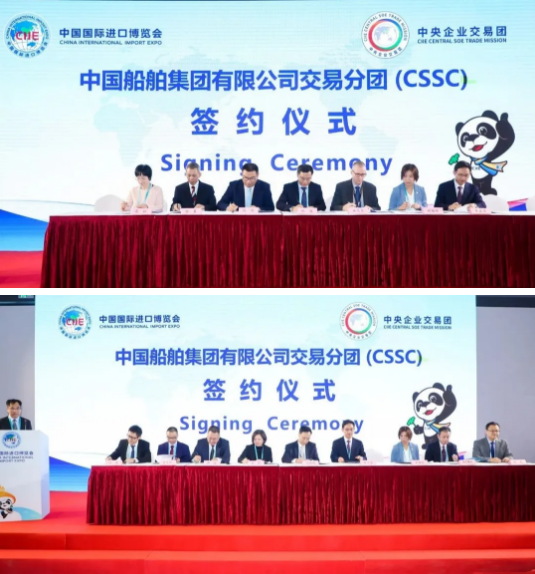 簽約儀式上,中國船舶集團所屬廣船國際股份有限公司、中船黃埔文衝船舶有限公司、滬東重機有限公司、陝西柴油機重工有限公司、中國船舶物資公司、中國船舶貿易有限公司、上海外高橋造船有限公司等7家企業與西門子、ABB、康士伯、瓦錫蘭、日本大發、韓國現代等19家合作商,共進行了23個項目簽約,簽約總金額共計1.14億美元,涉及軸帶發電機、主發電機、主柴油機、閥門遙控係統、柴油機零部件、曲軸等產品。另外,中國船舶集團參加本屆進博會專業觀眾觀展活動的人數也較往年有明顯提升。