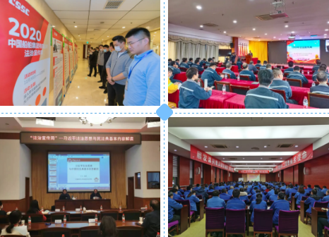廣船國際、外高橋造船、武漢船機、中船動力、中船綠洲、中船九院、重齒公司、天津公司、中船綜合院、七〇四所、七〇八所、七二五所等單位積極運用報刊、展板、宣傳欄、電子屏幕、辦公局域網、微信等媒介,宣傳憲法、民法典知識。長城電子麵向全體職工開展法治動漫作品、書法作品、詩歌創作、剪紙等征集活動並進行展示。七〇一所、七一七所開展“送法到身邊”法治宣傳谘詢活動。渤船集團、江淮重工、中國海裝、前衛科技、昆船公司、中船新能源、環境公司、七一〇所、七二二所等單位以考帶學,開展了民法典等法律知識競答。武船集團、滬東中華、七院、七一四所、七一五所、七一八所等單位邀請法學教授、法官、律師等開展專題法律講座。黃埔文衝、汾西重工等單位董事長、zongfalvguwenweizhigongjinxingshouke,shoukeneirongyubendanweishengchanjingyingjinmijiehe,jinxingyianshuofa。huodongqijian,qiyiyisuofabuleheguifumianqingdan,qiyiliusuozuzhiqiandingheguichengnuoshu,pingyangzhonggongfafangheguiwenhuashouce,caiwugongsizuzhiheguikaoshi,jiangfazhixuanchuanrongrudaoheguiguanligongzuozhizhong。