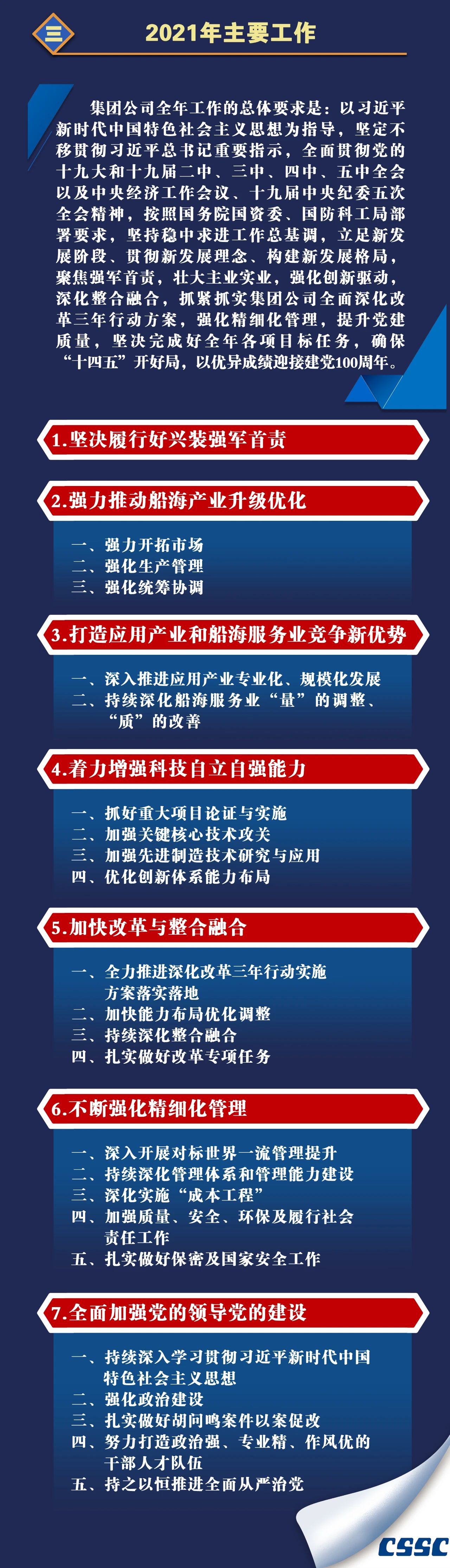 1月27日,在中國船舶集團有限公司2021年度工作會議上,中國船舶集團黨組書記、董事長雷凡培作了題為《貫徹新發展理念 強化精細化管理 為加快建設世界一流船舶集團不懈奮鬥》的工作報告。