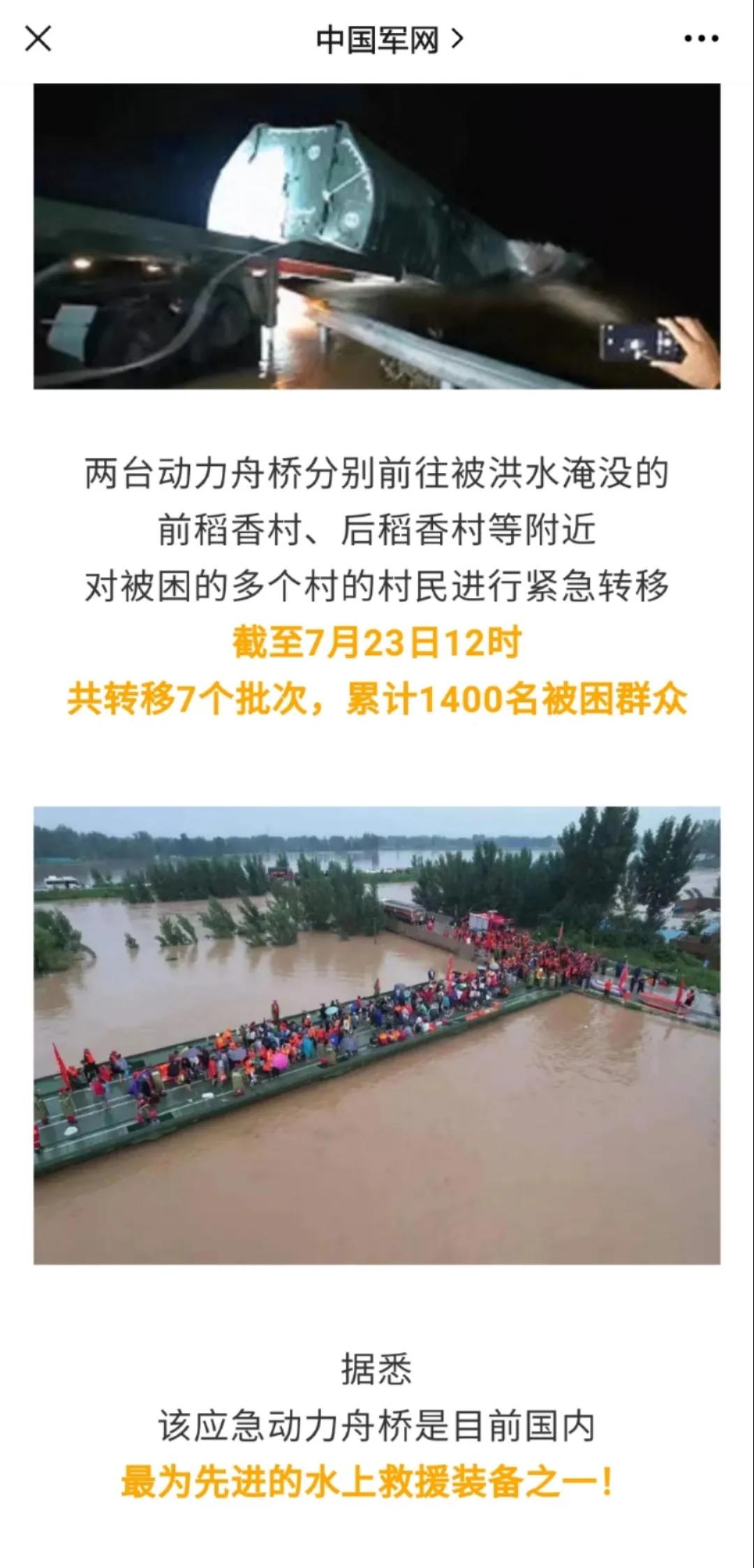 在這次執行河南抗洪搶險任務之前,動力舟橋曾參與過安徽池州潰口封堵、鬆花江特大洪水、鄱陽湖洪澇等多次災害救援,可以說是戰功累累。