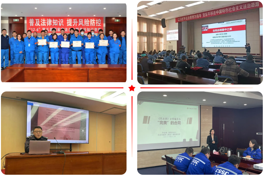 ▲ 黃埔文衝、昆船公司、七〇四所、七一二所等單位召開法治建設委員會會議進行專題法治學習;國際工程公司舉辦了誠信合規手冊發布儀式;渤船集團、平陽重工、環境公司、陝柴重工等單位發放《習近平法治思想學習綱要》等學習資料。