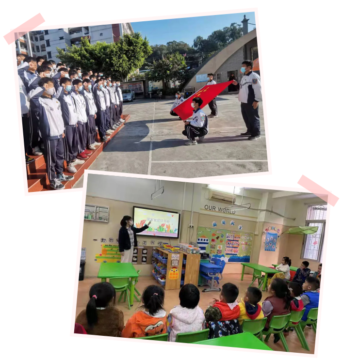 ▲ 廣州公司積極“送法到身邊”,組織所屬技校學生開展憲法宣誓,麵向所屬幼兒園講授憲法知識,七一八所開展了普法宣傳進社區活動。
