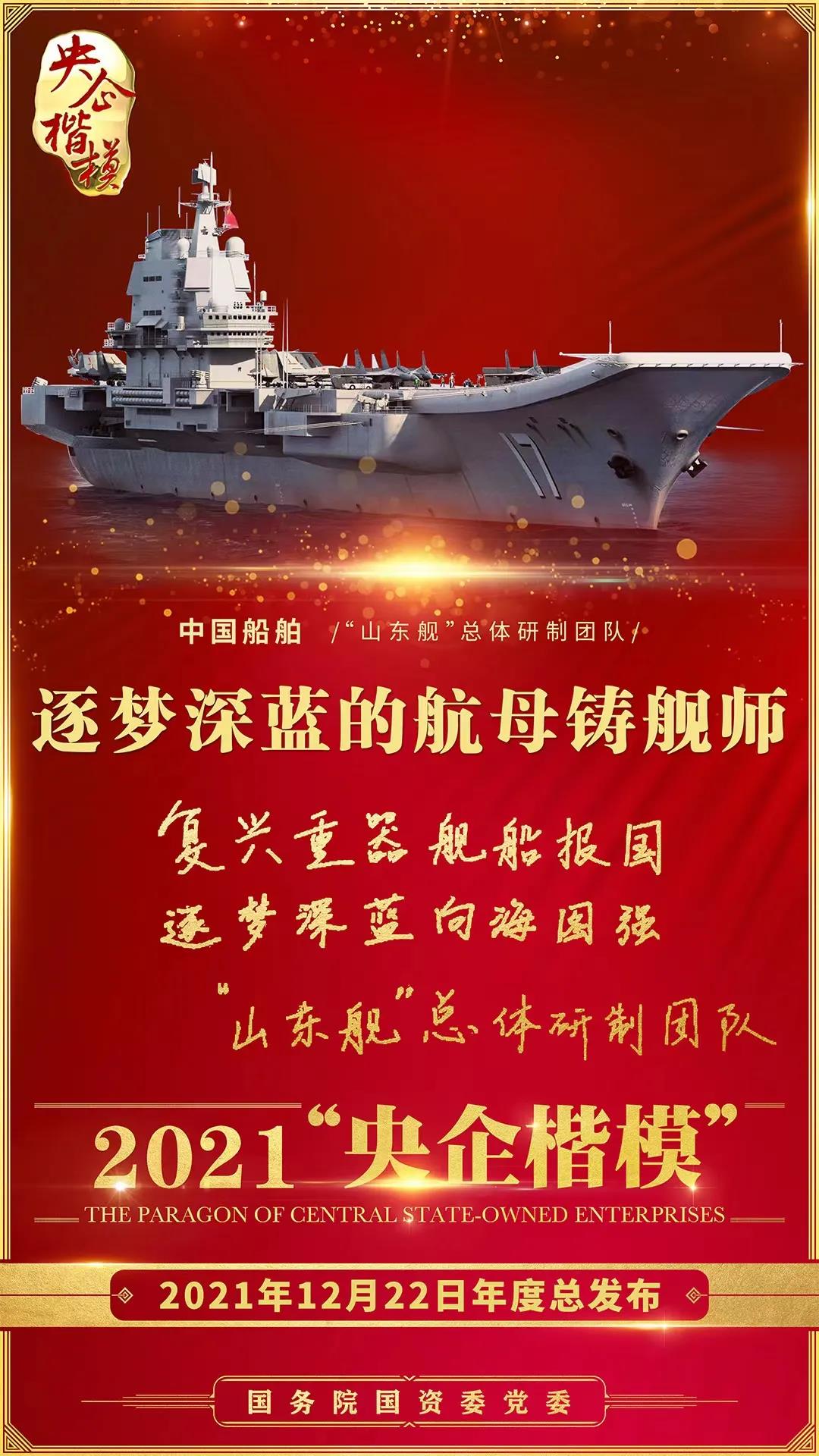 12月22日,國務院國資委黨委舉行2021年第二批“央企楷模”發布暨年度總發布儀式,中國船舶“山東艦”總體研製團隊榮獲2021年“央企楷模”榮譽稱號。繼“奮鬥者”號萬米載人潛水器研發團隊獲評2020年“央企楷模”榮譽稱號後,中國船舶集團再獲此殊榮。