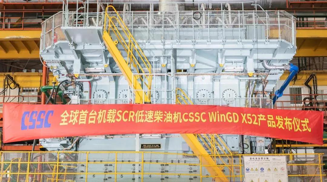 2021年7月22日,由中國船舶集團旗下中船動力集團自主研發、大連船柴建造的全球首台機載SCR(選擇性催化還原係統)船用低速機CSSC WinGD X52正式向全球發布。