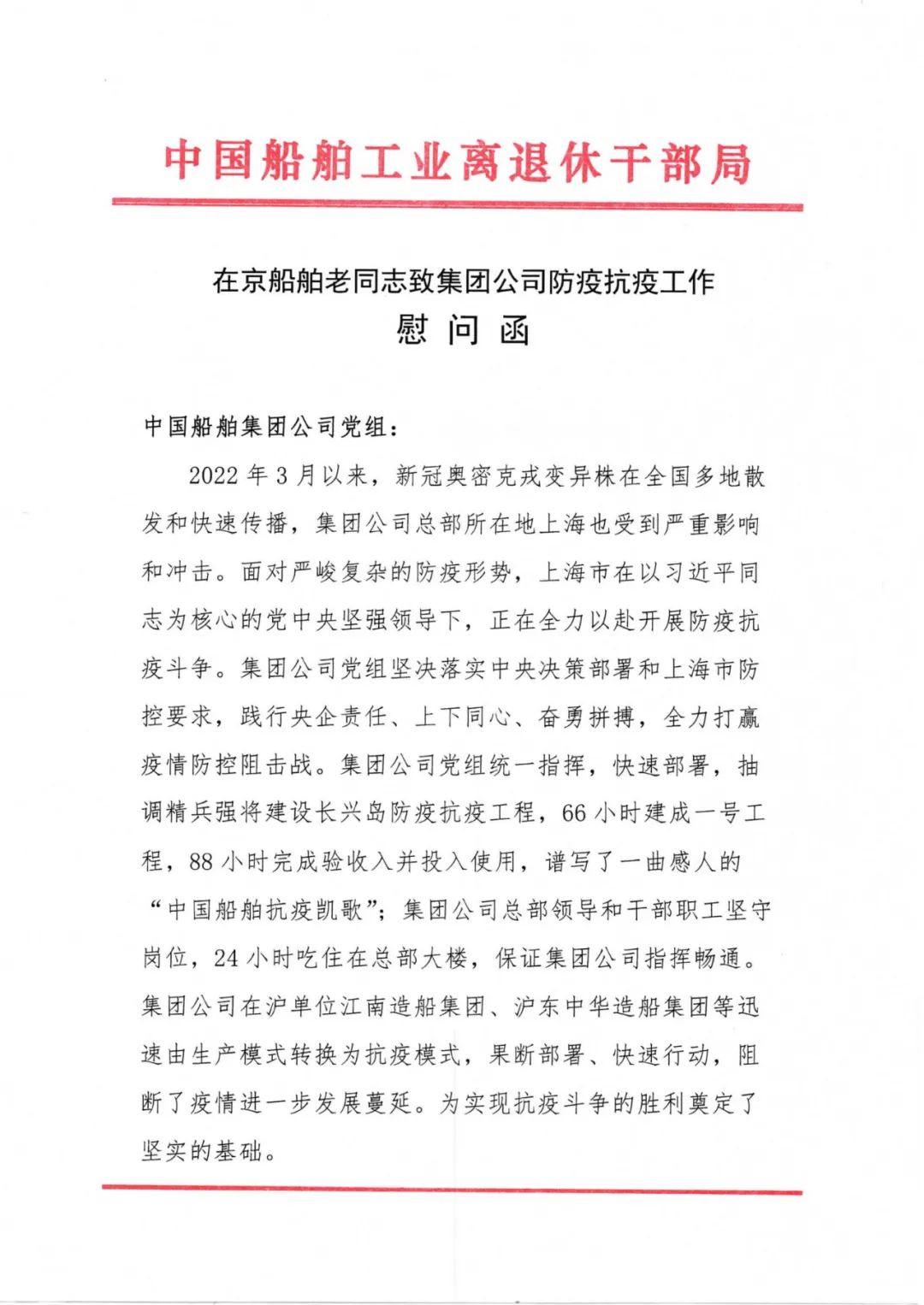 抗疫形勢嚴峻複雜,中國船舶集團離退休老領導老同誌關注抗疫、心係集團,為幹部職工加油鼓勁。