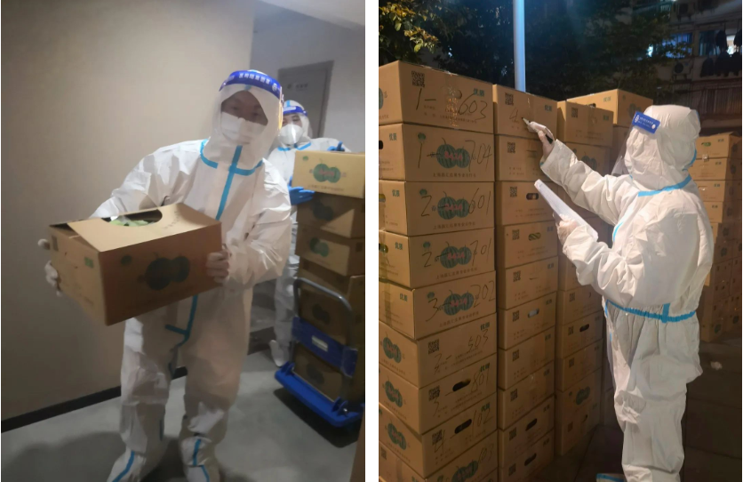 由於防護服有限,居住在黃浦區某社區的集團職工中隻有鄭珂成了誌願者,隻見他時而忙著卸貨分裝,時而忙著打包標記,7棟樓近400戶hu居ju民min共gong計ji幾ji百bai公gong斤jin的de物wu資zi,都dou由you他ta一yi人ren完wan成cheng了le分fen裝zhuang和he標biao記ji工gong作zuo。在zai他ta服fu務wu的de對dui象xiang中zhong,既ji有you身shen在zai涉she疫yi樓lou棟dong無wu法fa出chu戶hu的de同tong事shi,也ye有you素su未wei謀mou麵mian的de鄰lin居ju。