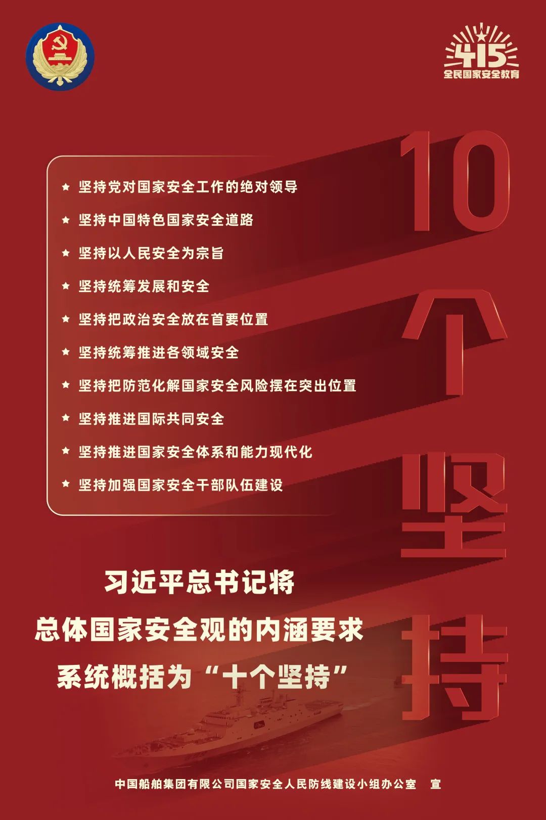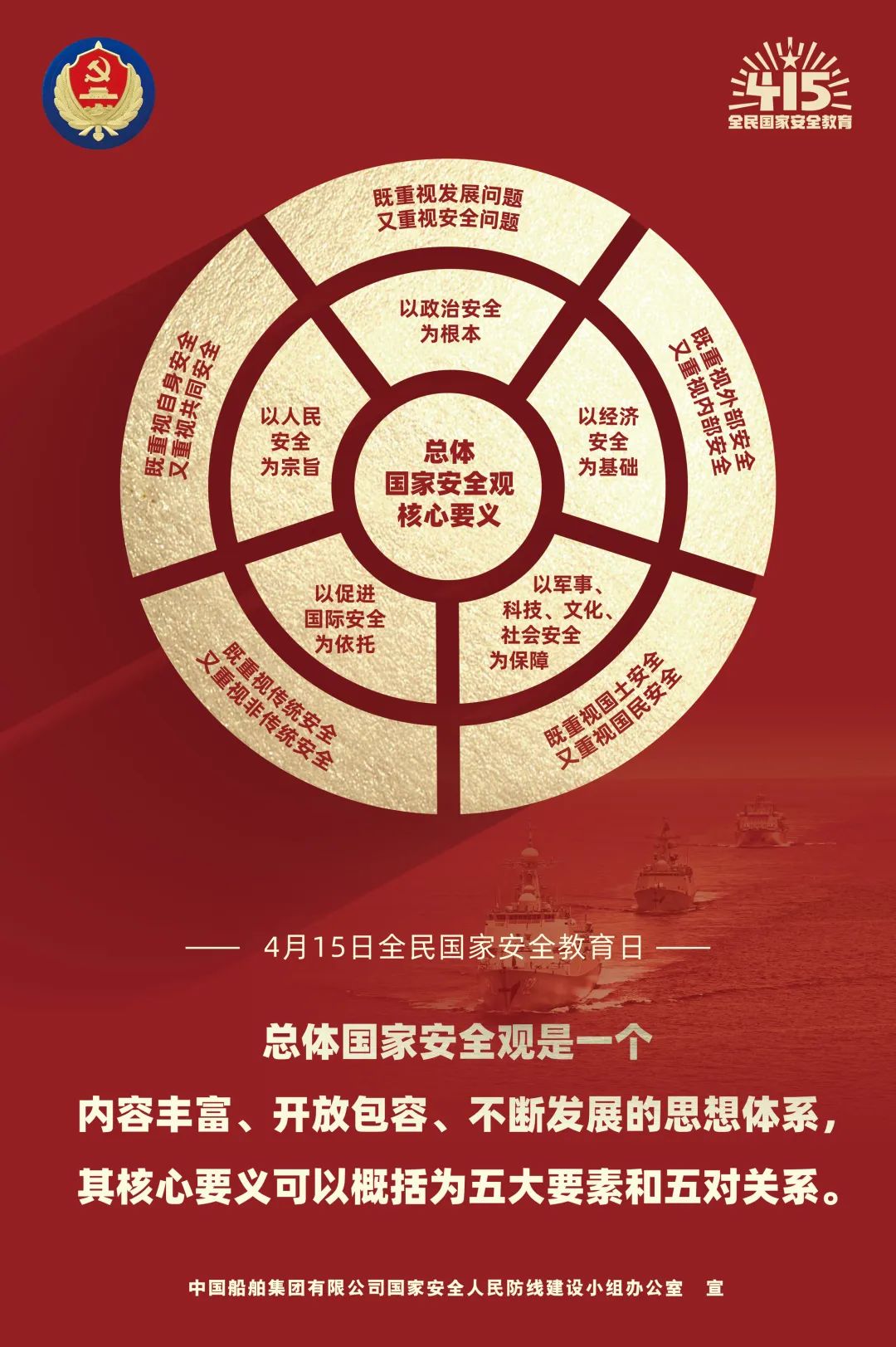 2014年4月15日(ri),習(xi)近(jin)平(ping)總(zong)書(shu)記(ji)在(zai)中(zhong)央(yang)國(guo)家(jia)安(an)全(quan)委(wei)員(yuan)會(hui)第(di)一(yi)次(ci)會(hui)議(yi)上(shang)首(shou)次(ci)提(ti)出(chu)總(zong)體(ti)國(guo)家(jia)安(an)全(quan)觀(guan),強(qiang)調(tiao)要(yao)準(zhun)確(que)把(ba)握(wo)國(guo)家(jia)安(an)全(quan)形(xing)勢(shi)變(bian)化(hua)新(xin)特(te)點(dian)新(xin)趨(qu)勢(shi),堅(jian)持(chi)總(zong)體(ti)國(guo)家(jia)安(an)全(quan)觀(guan),走(zou)出(chu)一(yi)條(tiao)中(zhong)國(guo)特(te)色(se)國(guo)家(jia)安(an)全(quan)道(dao)路(lu)。