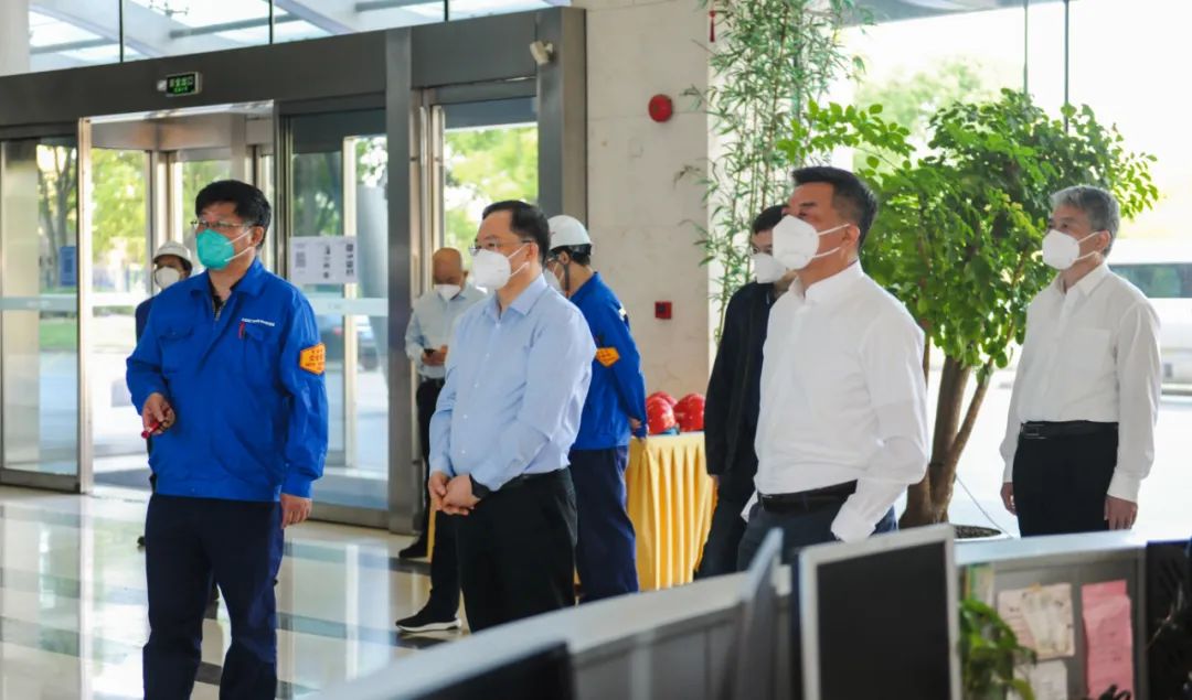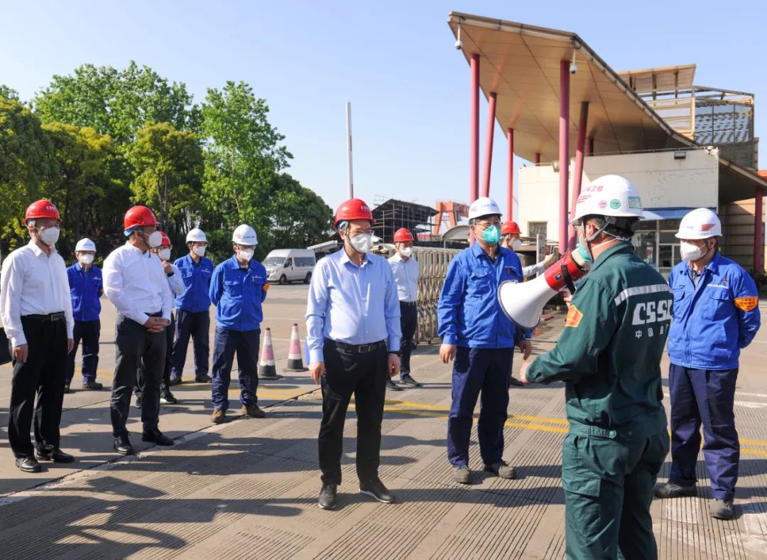 楊金成聽取了外高橋造船近期疫情防控、複工複產工作以及生產經營情況的彙報,實地調研進出廠管理、隔離觀察點建設以及生產人員封閉管理情況,並登上大型郵輪查看了複工複產準備情況。