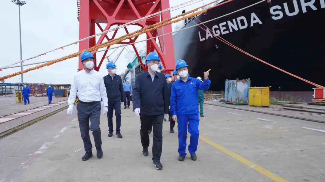 楊金成聽取了兩家企業近期疫情防控、複工複產工作以及生產經營情況的彙報,實地查看了江南造船隔離觀察點,到兩家企業船塢碼頭調研了重點在建產品的複工複產情況。