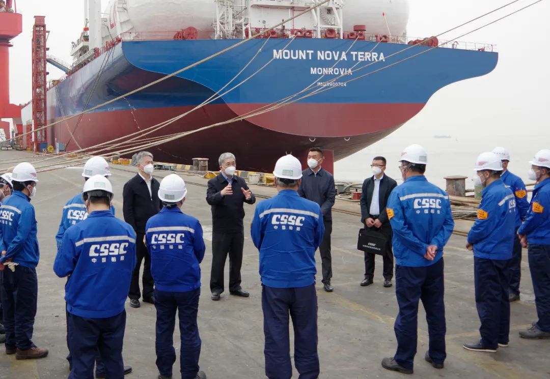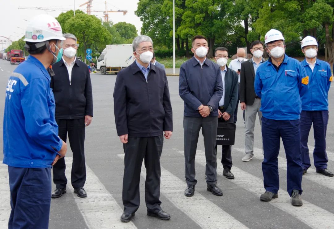 5月15日,中國船舶集團有限公司黨組書記、董事長雷凡培到集團公司旗下上海外高橋造船有限公司調研疫情防控和複工複產工作。中國船舶集團黨組成員、副總經理孫偉參加調研。