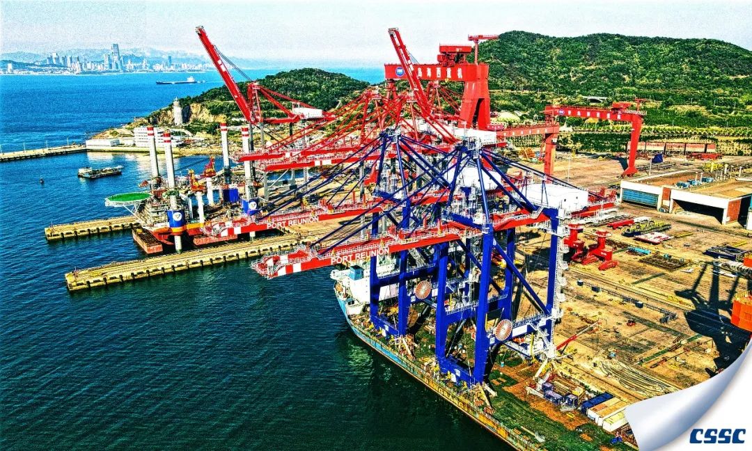 中國船舶集團助力“一帶一路”建設——繼毛裏求斯3台岸橋及8台輪胎吊項目後,武漢船機海西重工為法屬留尼汪建造的2台岸橋順利發運。