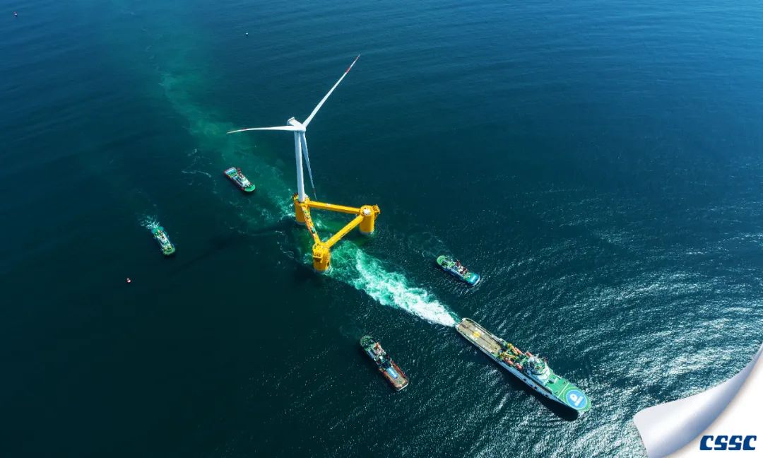 中國海裝建造的國內首台深遠海浮式風電裝備——“扶搖號”從廣東茂名廣港碼頭正式起航。