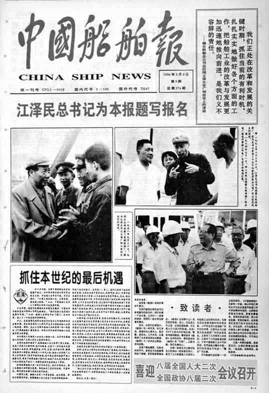 1994年3月6日,《中國船舶報》首次啟用江澤民同誌親筆題寫的報頭。