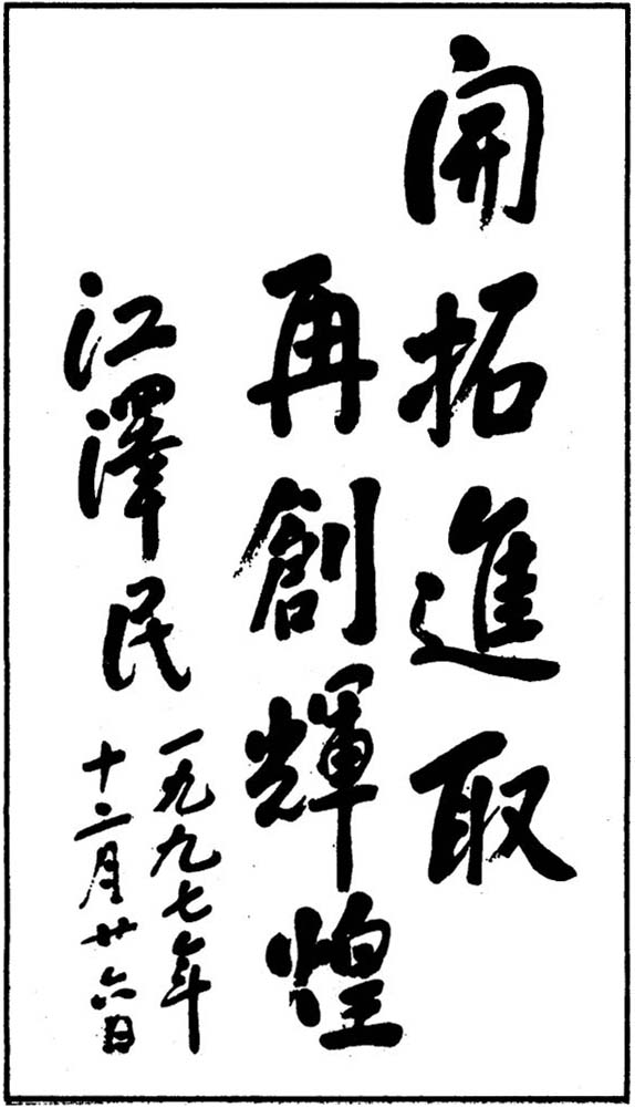 1997年12月26日,江澤民同誌為中國船舶工業總公司題詞:“開拓進取,再創輝煌”。