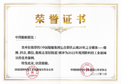 《中國船舶集團定點幫扶雲南20年之全媒體——微博、抖音、微信、報紙走基層報道》通過微博、抖音、微信、報紙等全媒體平台創新形式,將軍工央企宣傳報道助力脫貧攻堅、推進鄉村振興、踐行社會責任優秀成果提升到一個全新的媒體融合報道領域。