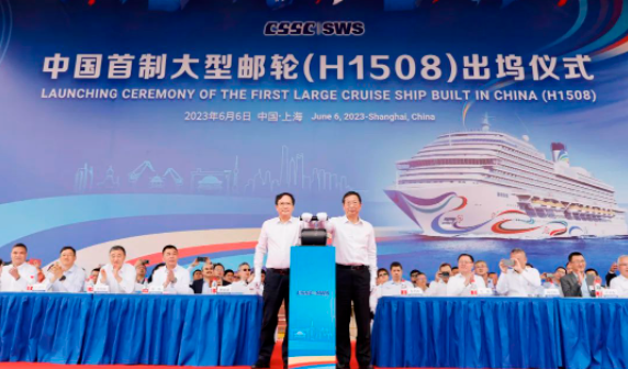 中國船舶集團黨組副書記、總經理楊金成宣布大型郵輪出塢正式啟動,並與上海市委常委、浦東新區區委書記朱芝鬆共同推動啟動裝置。中國船舶集團黨組成員、副總經理孫偉致辭。