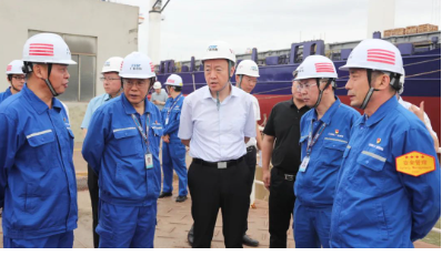 6月8日下午、9日上午,在龍穴基地調研期間,溫剛走進造修船生產現場,登上多型重點在建船舶,察看車間、船塢、船台等生產區域,與企業班子成員深入交流,聽取了黃埔文衝、廣船國際產業發展、深化改革、科技創新、人才隊伍建設、精益管理、黨的建設等有關情況的彙報。