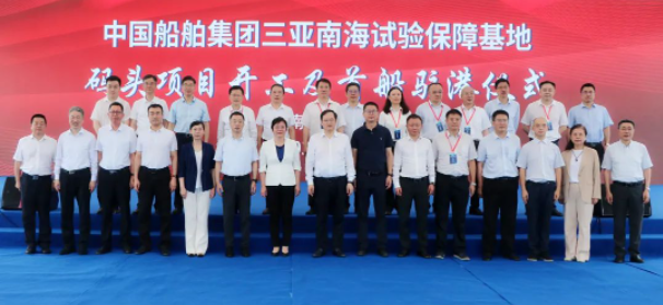 6月14日,中國船舶集團有限公司三亞南海試驗保障基地碼頭項目開工及首船駐港儀式在三亞舉行。中國船舶集團黨組副書記、總經理楊金成出席儀式並宣布項目開工,黨組成員、副總經理盛紀綱出席儀式並致辭,國防科工局係統工程四司副司長蘇懷山,海南省副省長謝京,三亞市委常委、常務副市長盛勇軍出席儀式。