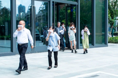 本次演練模擬總部1#樓電梯間、2#7層會議室發生火災,物業人員先後用滅火器、樓(lou)層(ceng)消(xiao)防(fang)水(shui)係(xi)統(tong)實(shi)施(shi)初(chu)期(qi)火(huo)災(zai)撲(pu)救(jiu),火(huo)勢(shi)無(wu)法(fa)控(kong)製(zhi)後(hou)立(li)即(ji)拉(la)響(xiang)疏(shu)散(san)警(jing)報(bao),同(tong)時(shi)向(xiang)最(zui)近(jin)的(de)消(xiao)防(fang)站(zhan)請(qing)求(qiu)支(zhi)援(yuan)。全(quan)體(ti)人(ren)員(yuan)按(an)照(zhao)疏(shu)散(san)路(lu)線(xian)緊(jin)急(ji)有(you)序(xu)完(wan)成(cheng)了(le)疏(shu)散(san)。