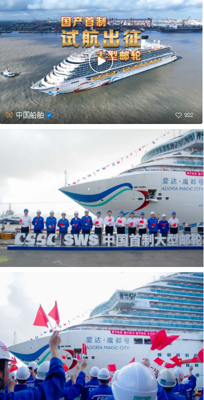 “我宣布,中國首製大型郵輪試航出征!”