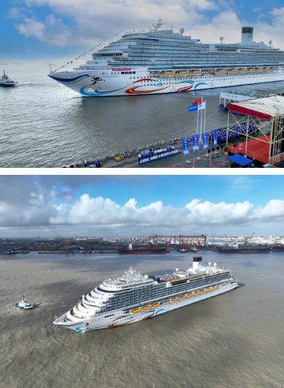 7月17日清晨7時許,隨著中國船舶集團有限公司黨組書記、董事長溫剛一聲令下,白色塗裝、流線型船體、身係“敦煌飛天彩帶”的首艘國產大型郵輪“愛達·魔都號”緩緩駛出中國船舶集團外高橋造船4號碼頭,正式出海試航。集團公司黨組成員、副總經理盛紀綱出席試航出征儀式並致辭。