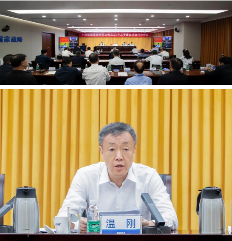 10月17日,中國船舶集團有限公司召開2023年三季度經濟運行分析會。中國船舶集團有限公司黨組書記、董事長溫剛出席會議並講話,集團公司黨組成員、副總經理孫偉,集團公司紀檢監察組組長、黨組成員李佳穎出席會議,會議由集團公司黨組成員、總會計師賈海英主持。