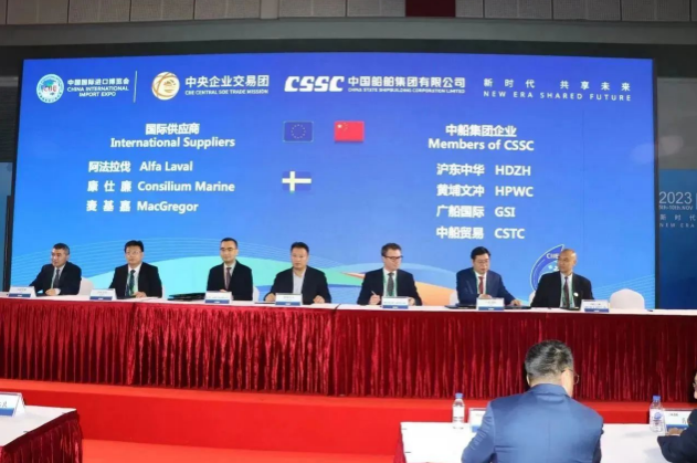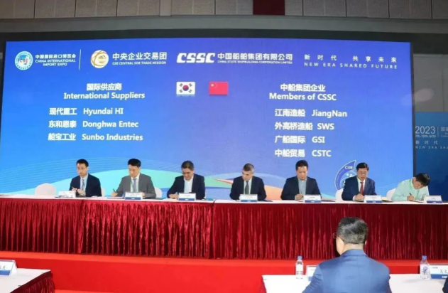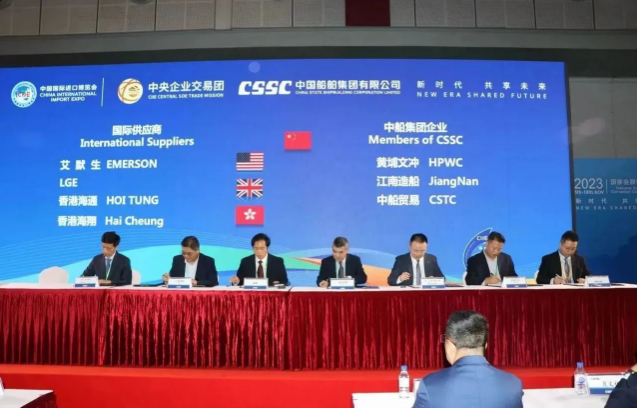 中國船舶集團有限公司黨組書記、董事長溫剛參加第六屆進博會暨虹橋國際經濟論壇開幕式,並參加巡館活動。中國船舶集團黨組成員、副總經理盛紀綱應邀參加虹橋國際經濟論壇“開放創新賦能企業發展”分論壇,出席11月6日下午舉行的第六屆進博會國資委中央企業交易團中國船舶交易分團采購集中簽約儀式並致辭。