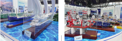 重點展示奮力摘取造船業最後一顆明珠的首製國產大型郵輪,以風、光、甲醇裝備等為主體的綠色船舶等高端海洋裝備、以“商業模式創新+創新技術應用”為引領的海洋文旅、深海養殖、海上風電等新興海洋經濟裝備、踐行“服務國家戰略”企業使命的與自然資源部和廣東省合作項目成果等,展現了中國船舶集團作為世界第一造船集團的總體實力、企業使命。