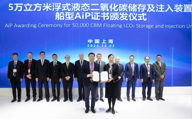 在展會現場,辛國斌、溫剛等參觀了集團公司展台,並共同見證了中國船舶集團與法國GTT公司簽訂2023版諒解備忘錄(MOU)、大連造船海洋CCUS產業鏈產品頒證、5萬立方米浮式液態二氧化碳儲存及注入裝置船型AIP證書頒發儀式、2萬及1.2萬立方米液態二氧化碳運輸船船型AIP證書頒發儀式。