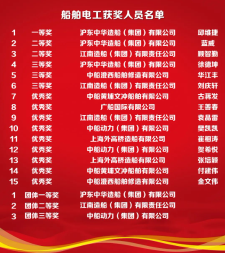 本次競賽項目既有船舶行業主體工種——船舶電工,又有現代製造業重要工種——加工中心操作調整工。競賽由滬東中華、707所承辦,上海公司協助負責保密監督工作;競賽首次全部采用第三方裁判,進一步提升執裁專業性和公正性。來自40家成員單位共計120名選手同台角逐,最終評選出個人及團體一、二、三等獎和個人優秀獎,優秀組織獎等獎項。參賽選手們相互學習交流、深入切磋技藝,展現了中國船舶技能人才頑強拚搏、追求卓越的良好精神麵貌。