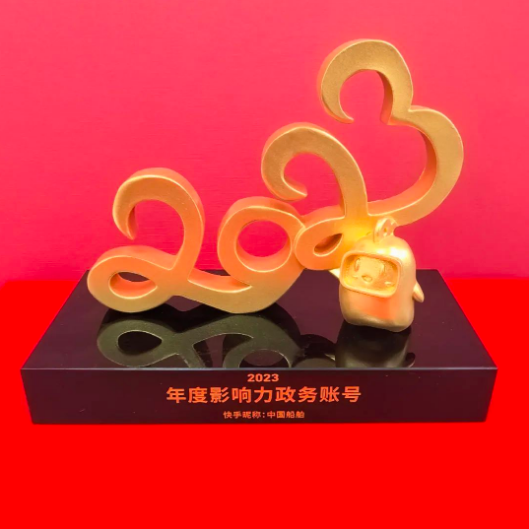 2023年,中國船舶集團微信公眾號、微博、抖音、視頻號、快手、頭條號等新媒體平台加快推進融合發展,通過文字、影音、媒體融合等形式,全方位、多角度報道了集團公司的重大工程、重要活動、重點項目、優秀成果和先進典型等,進一步講好中國船舶故事,更好地展示中國船舶品牌形象,並取得了可喜的成績。2023年,“中國船舶”微博榮登“全國十大國資央企微博”榜單,位列第八;“中國船舶”抖音播放量突破一億,在熱點事件回應中作出突出貢獻;“中國船舶”快手獲評“2023年度影響力政務賬號”。