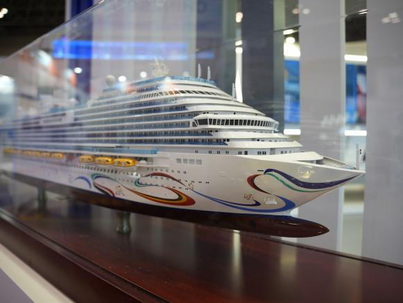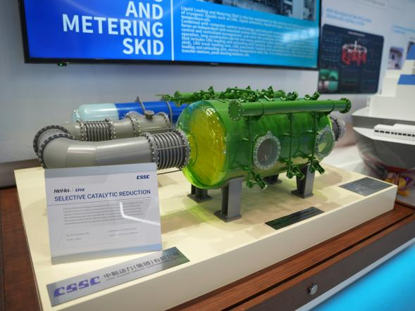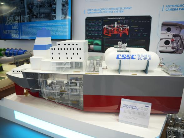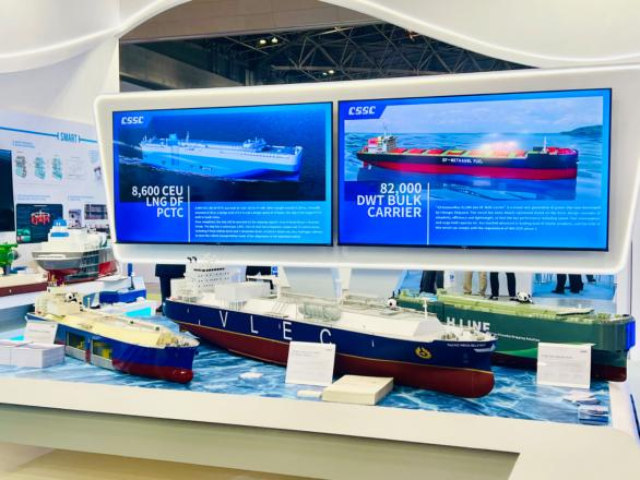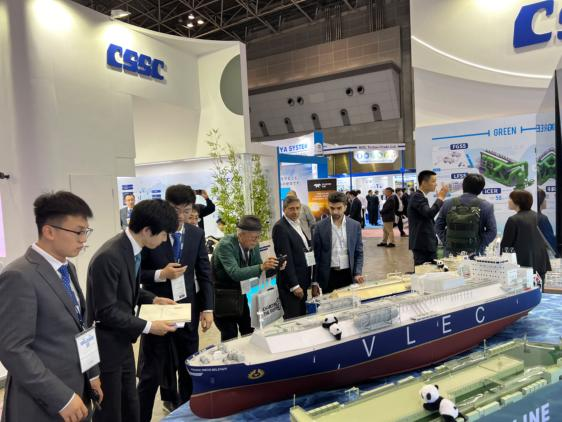 展會期間,國產大型郵輪、17.4萬立方米LNG船、8600車LNG雙燃料PCTC、9.9萬立方米VLEC、WinGD 9X92DF-2.0(-iCER)主機、船用LNG 供氣係統、船用碳捕捉係統、大口徑岸基智能裝卸係統等代表性產品悉數亮相,獲得海外市場高度關注。